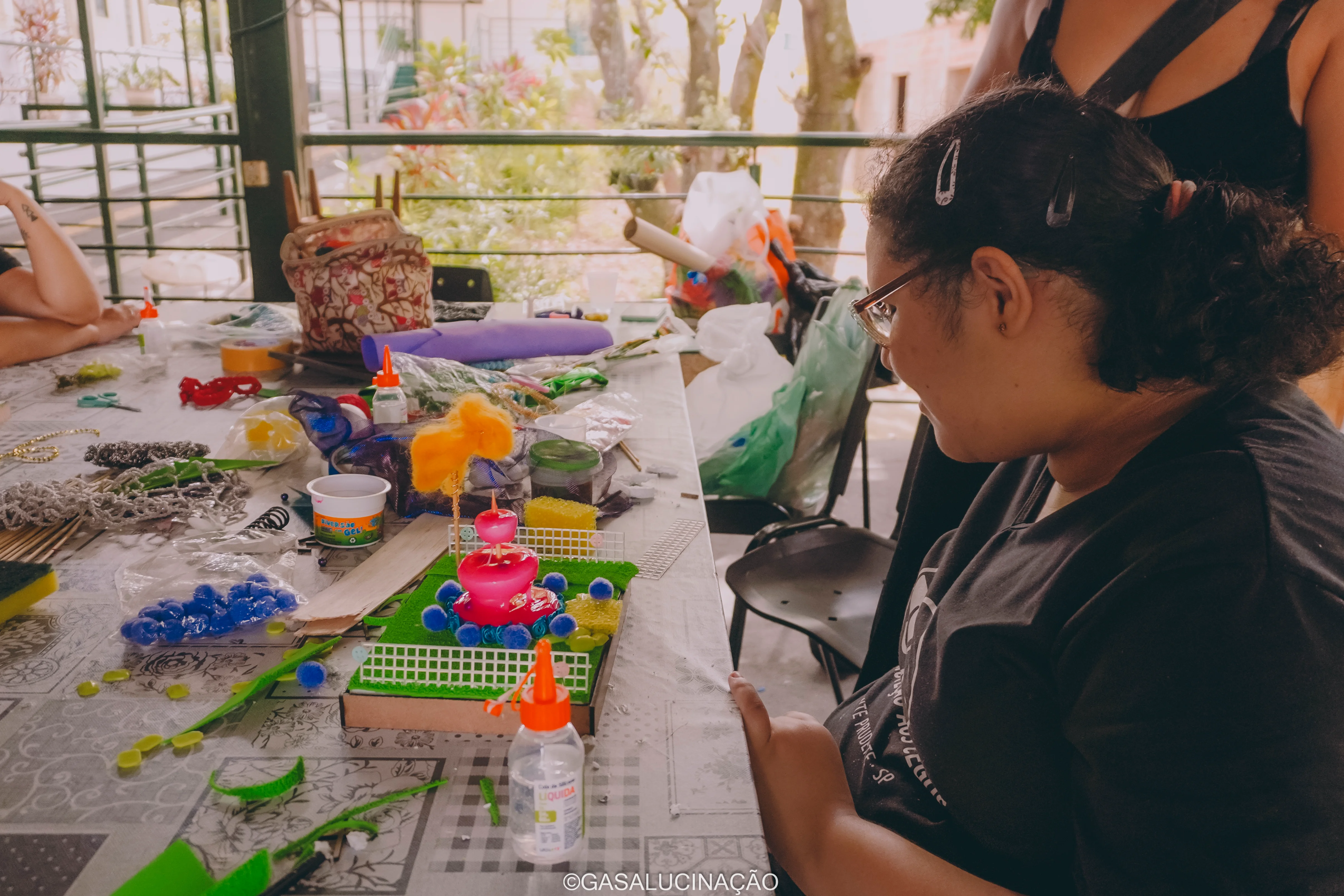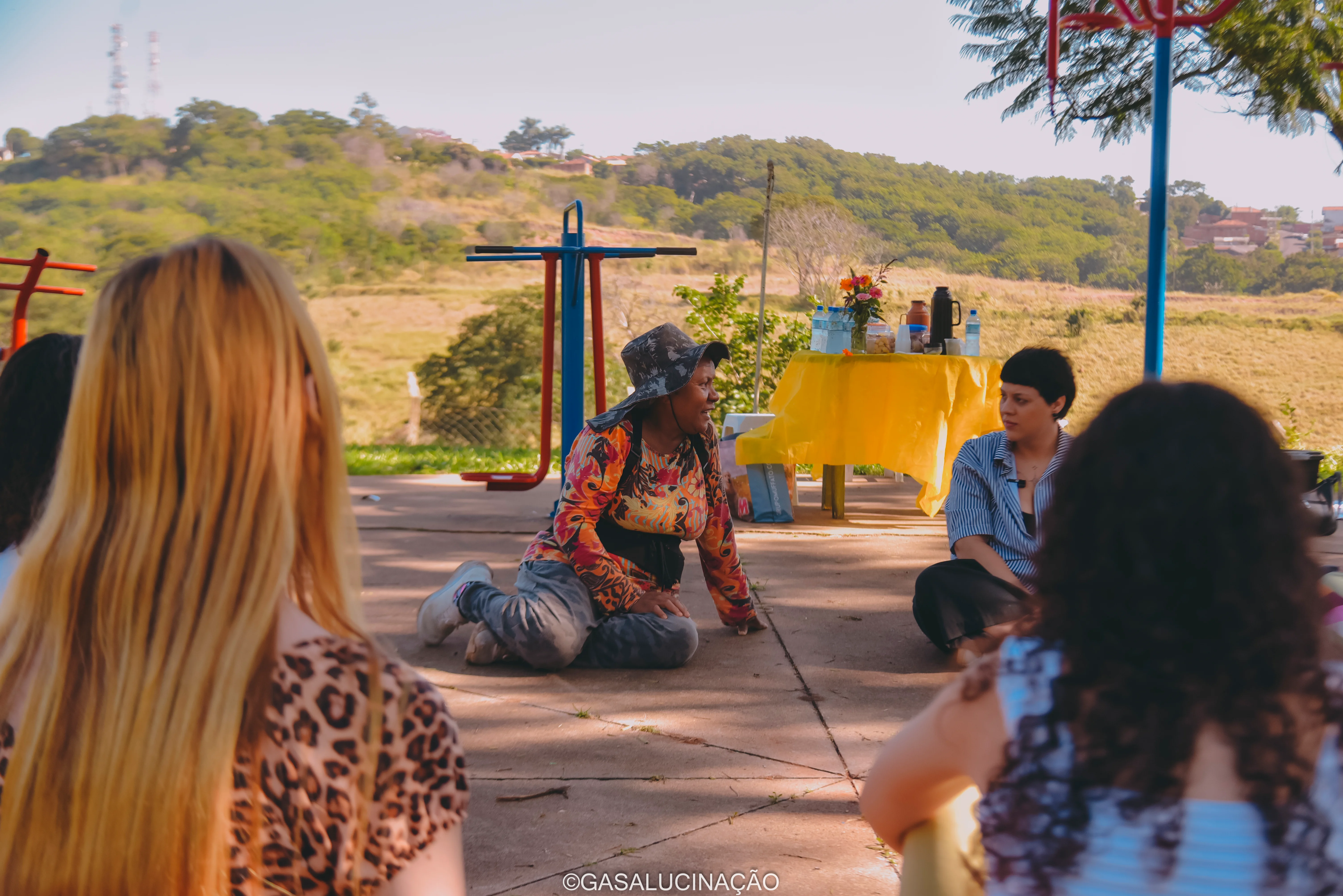Ficha Técnica: Oficineira: Elora Carolina. Facilitadora: Júlia Zanon. Produção artística: Elora Carolina. Parcerias: Galpão da Lua e Mocambo Nzinga. Fotos: Gasalucinação