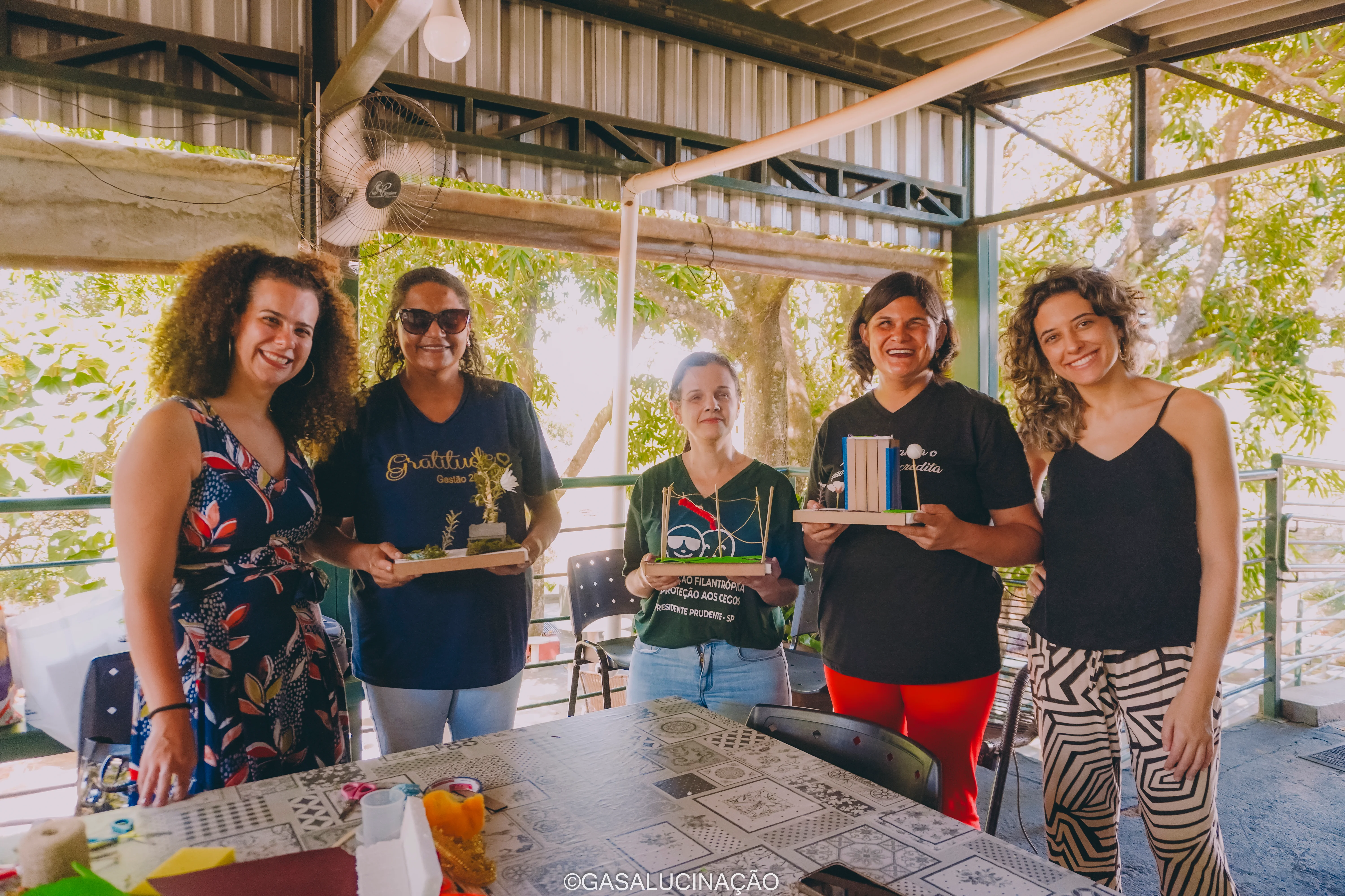Ficha Técnica: Oficineira: Nathália Campos. Facilitadora: Júlia Zanon. Produção artística: Elora Carolina. Parceria: Associação dos Cegos Presidente Prudente. Fotos: Gasalucinação